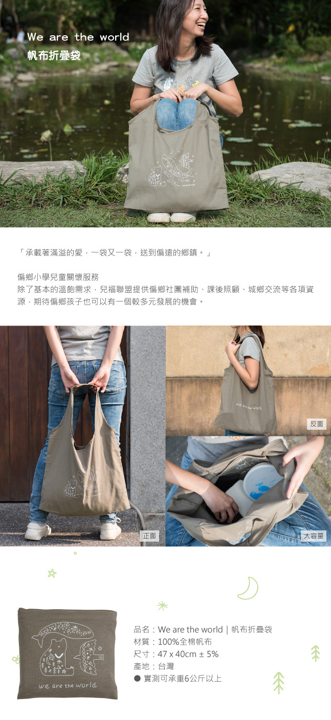 推出We are the world帆布摺疊袋,