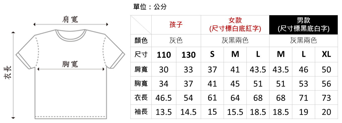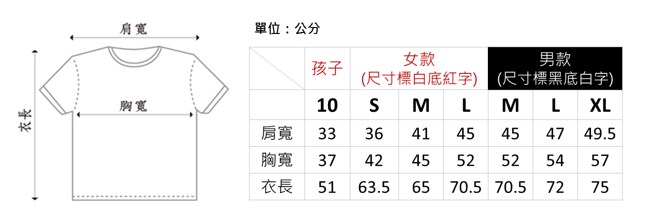 歷屆愛T恤尺寸略有不同,並因布料彈性、水洗處理、測量起訖點等因素與實際商品尺寸略有誤差,