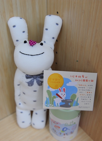 愛孩子小舖推出「限量中秋組合」,弱勢媽媽親手縫製的可愛玉兔寶寶,搭配由台灣好茶製成的寶寶造型茶包,以禮物袋包裝,成為最溫馨的中秋伴手禮!